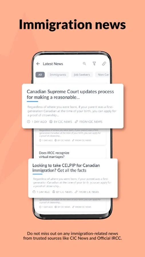 5. News: You can see all immigration news in one place, with trusted news sources like CIC News and IRCC Official.