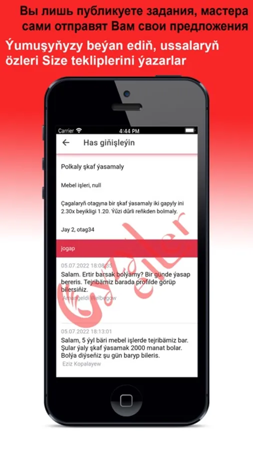 Şu goşundyny (programmany) ýükläp alyp, Siz sargyt ediji hem-de ýerine ýetiriji hem bolup bilersiňiz. «Gyzyl eller» ýerine ýetirijileriň gözleg ulgamy Size öz maksadyňyza görä hünärmeni tapmaga ýardam berýär. Ulgamda hasaba durmak bilen, indi Siz ussalary gözlemeli bolmarsyňyz. Siz diňe gerek hyzmatyňyz boýunça sargydy dörediň, onda hyzmatyň görnüşini, wagtyny, senesini, ýerini, we beýanyny görkezmek arkaly.