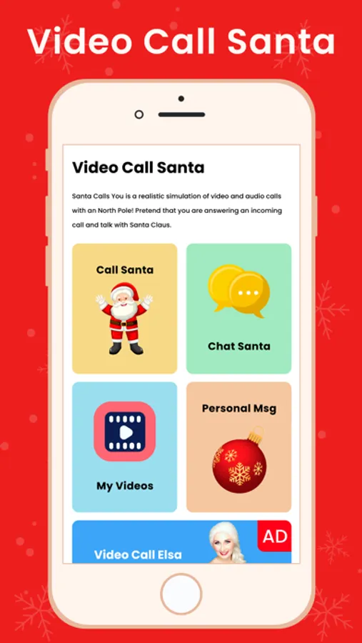 * Disclaimer: Video Call Santa App is for entertainment purposes only. All Calls are simulated and pre-recorded. App does not provide actual calling.