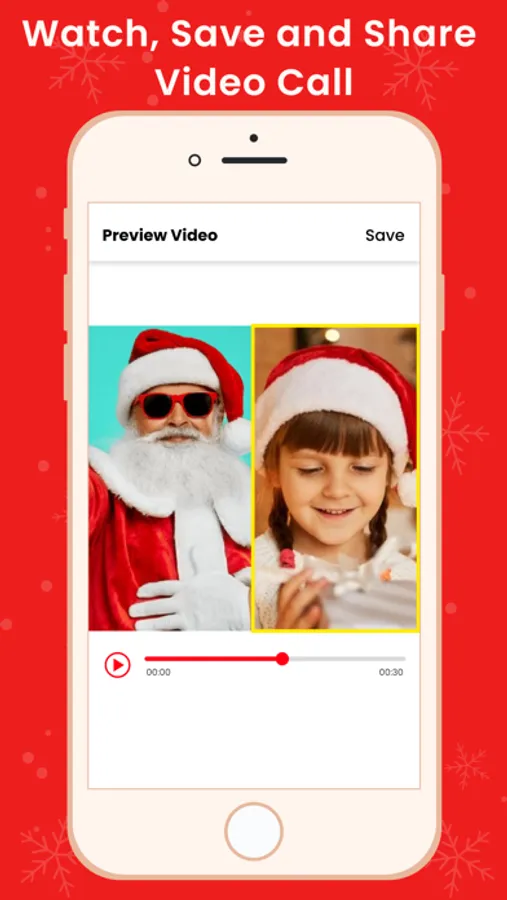 In this feature all you video calls with Santa Claus will be recorded. You can watch your video conversation with Santa Claus any time and share with friends and family and surprise them.