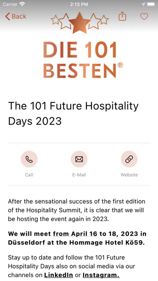 The app is your perfect companion for your visit to the event. Download the 101 Best Event App now.