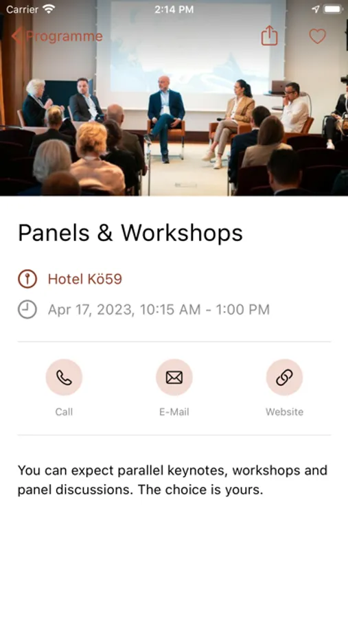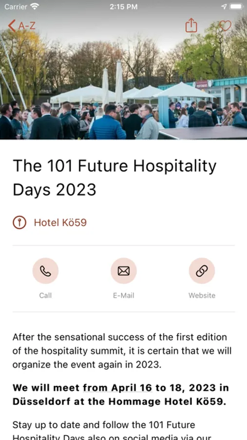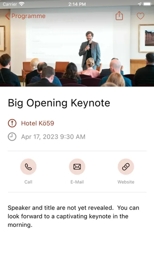 Important standard information, such as location and directions to the venue as well as event dates, are stored in the app for you.