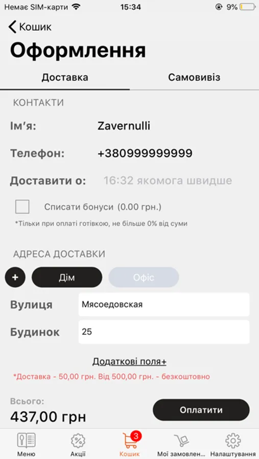 Додаток Zavernulli - це зручний і швидкий сервіс доставки.