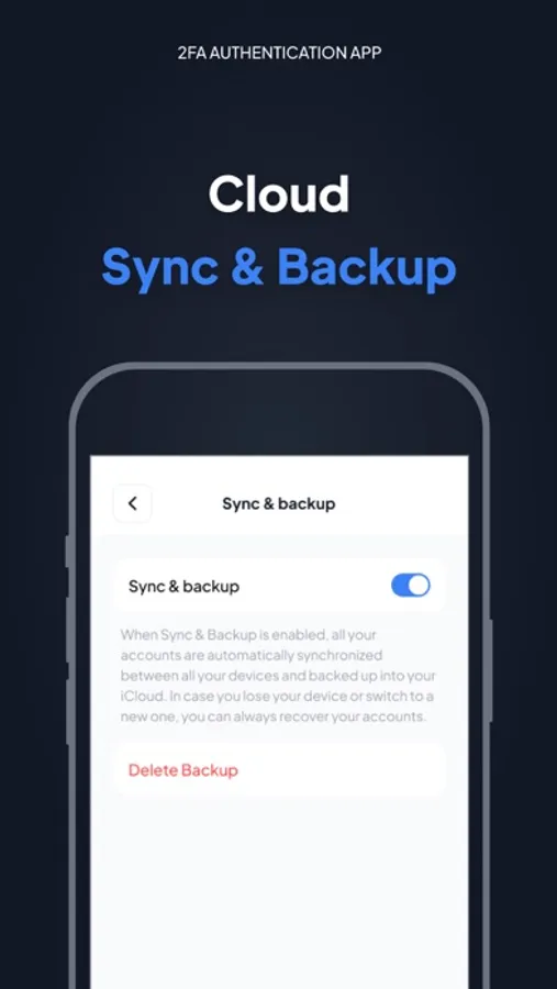 A secure, encrypted backup is automatically made in the Authenticator App in case your device is lost or replaced with a new one. And all your accounts will be automatically synced across all Apple devices
