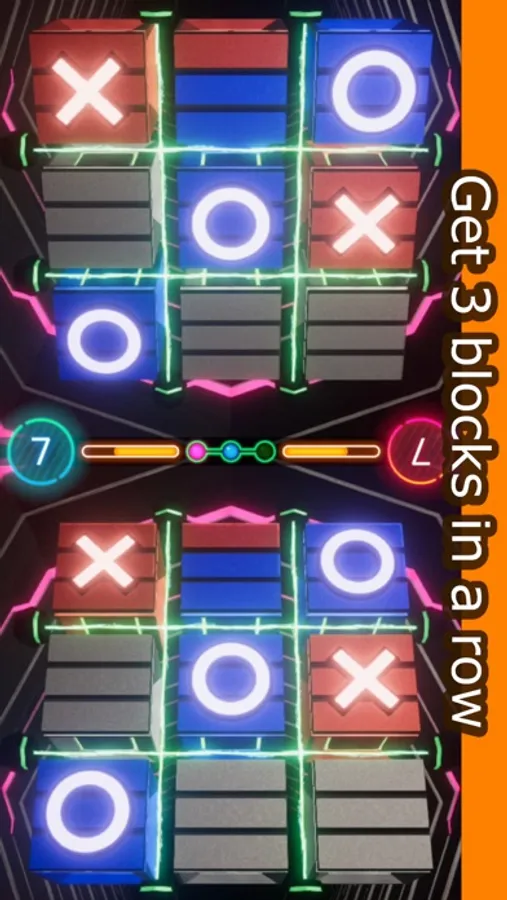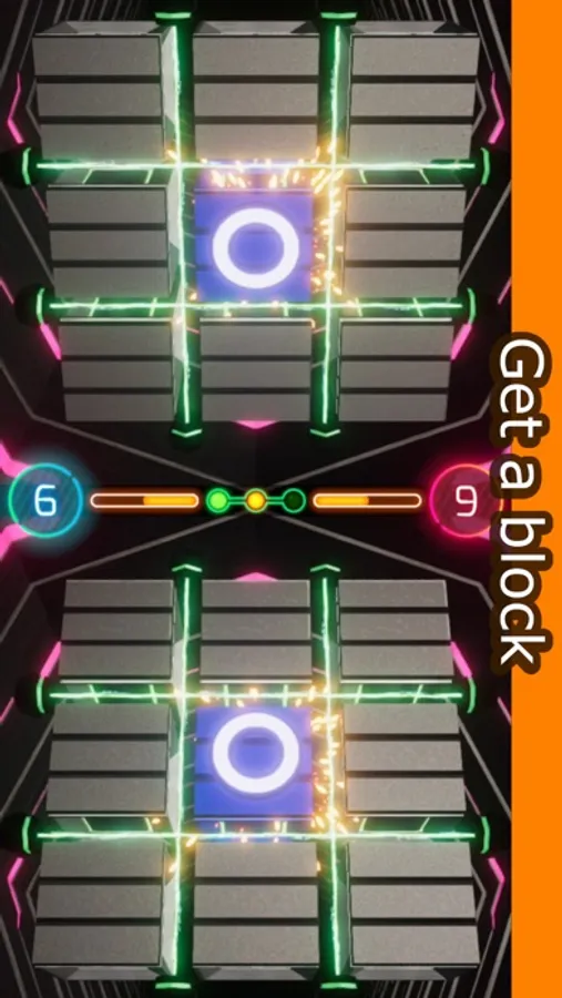 The first player to get a block in any one row (vertical, horizontal, or diagonal) wins!
