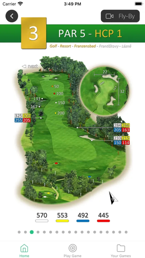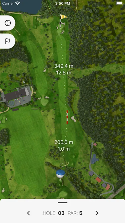 • Abstands-Messung zu dem Pin oder einem ausgewählten Punkt auf dem Golfplatz mit dem GPS-System