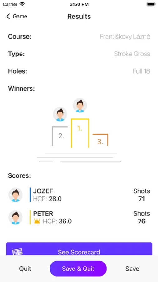 Die DATAcrea-App bietet alles, was für eine Golfrunde auf dem Golf Club Františkovy Lázně notwendig ist.