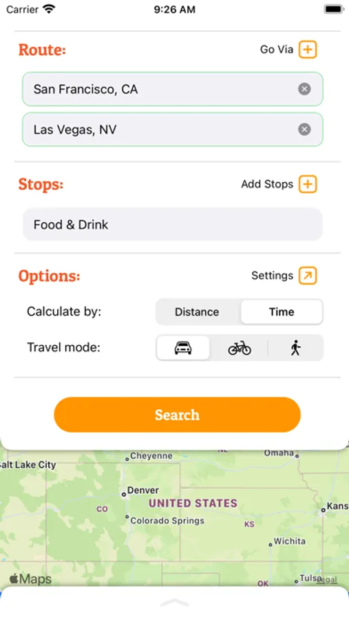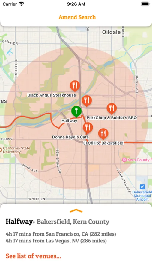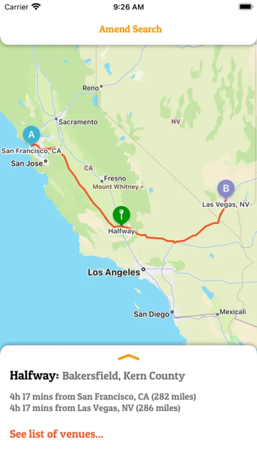Split your journey by time or distance and find the perfect place to meet or stop halfway using the Whatshalfway app.