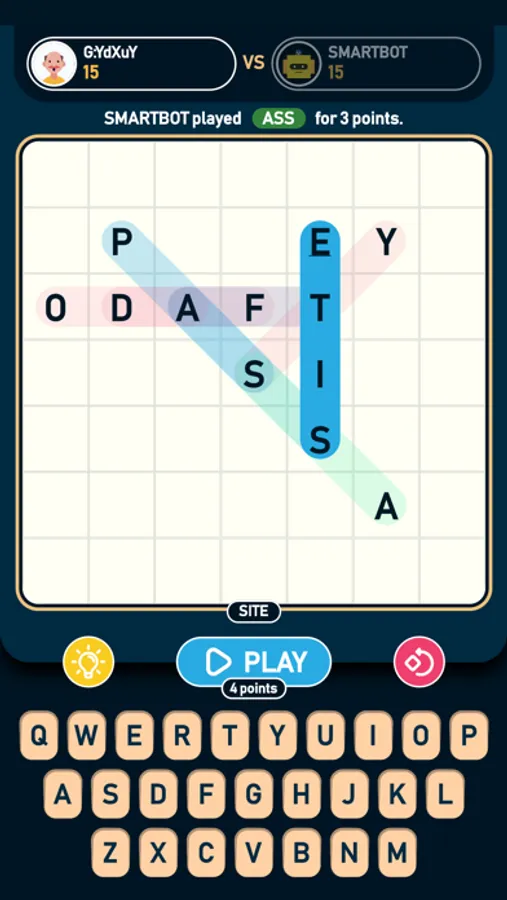 2. Offline Mode (Offline Word Game) - Play with the SMARTBOT on 3 different levels of difficulty. Try to beat the high difficult-level bot. I bet you can't!