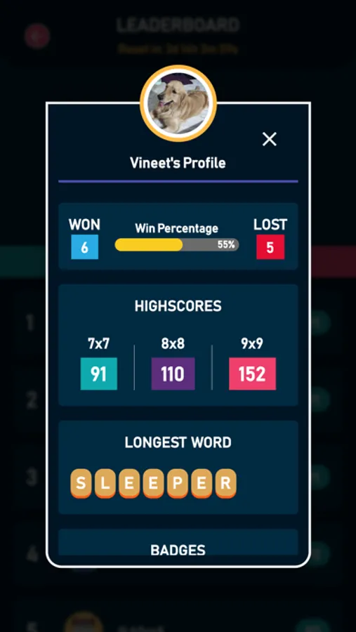 Send friend requests to the player and challenge them to a game of words. Compete to rank on the leaderboard