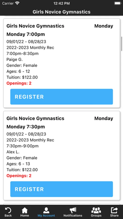 The AGC app allows you to manage your account with ease, register for classes, parties, and special events. You'll also receive important notifications about class changes, closings, registration openings, special announcements, and upcoming events.