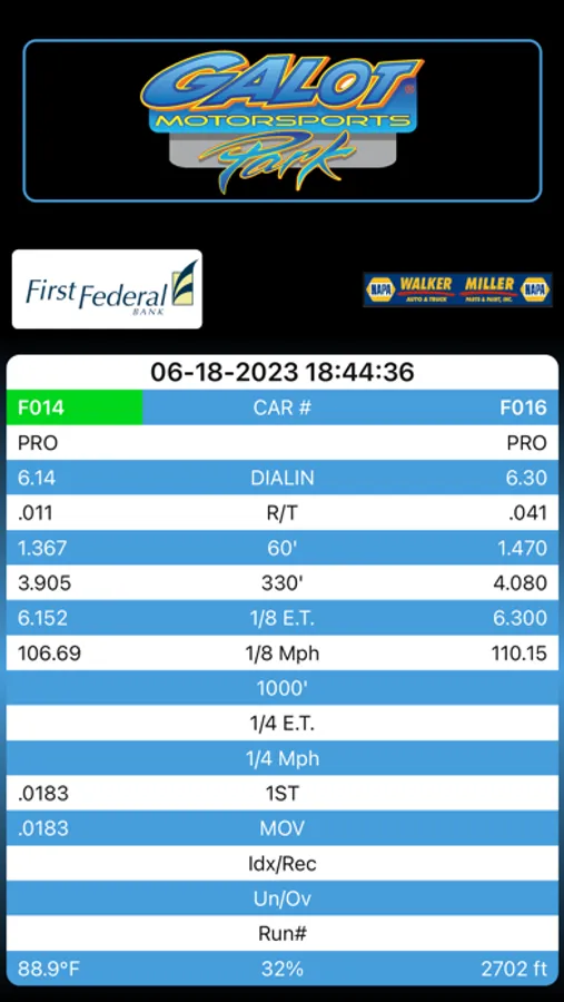 This app lets you review drag racing time slips from the Galot Motorsports Park race track at any time.