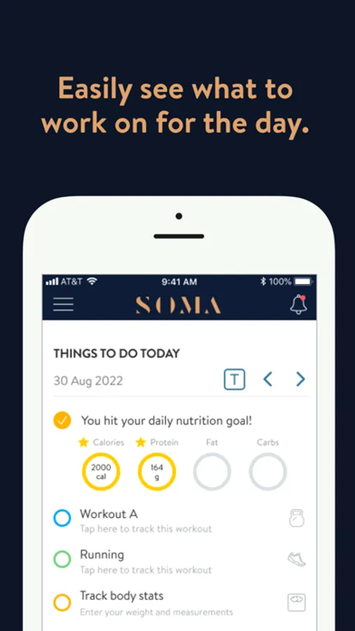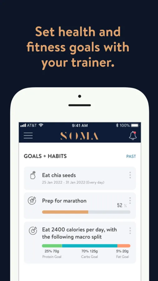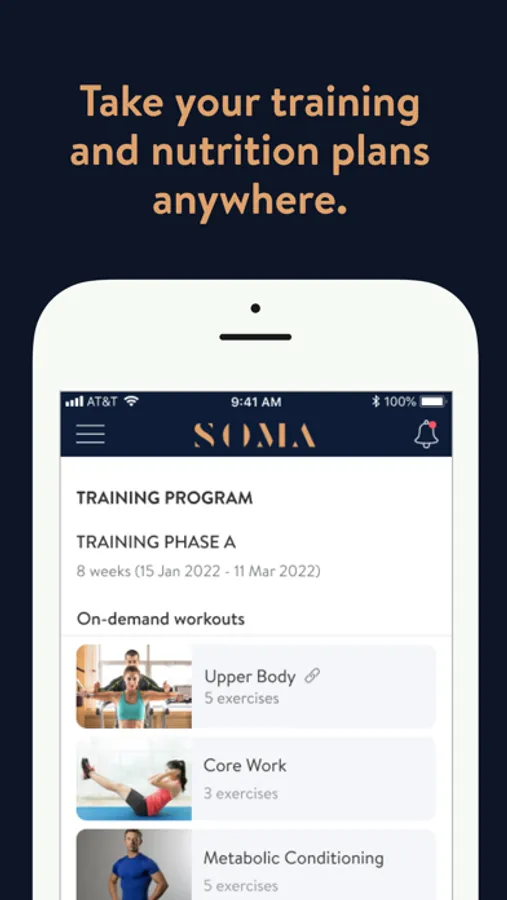 The SOMA PT App is exclusively for SOMA clients to access their personalised program and direct PT support to help clients achieve fitness, transformation and health goals. You can follow & track your workouts, nutrition, results and other factors all with the direct help of your PT.