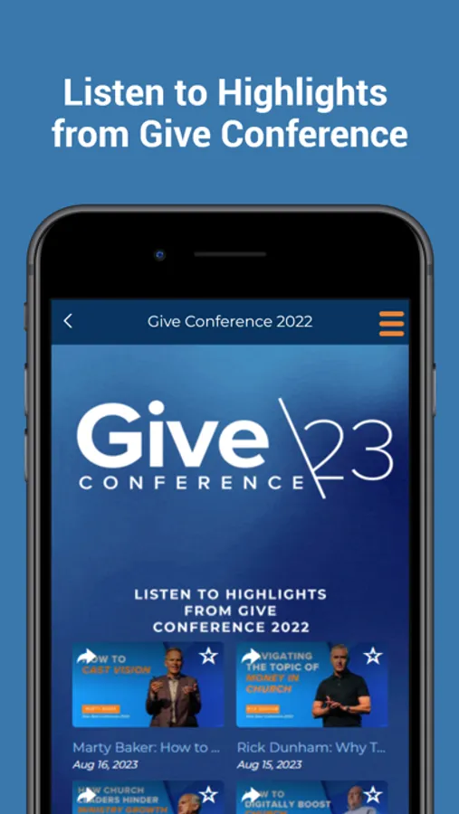 Interact with our Give Conference app to stay up-to-date on all things Give Conference as well as access special features and content while attending.