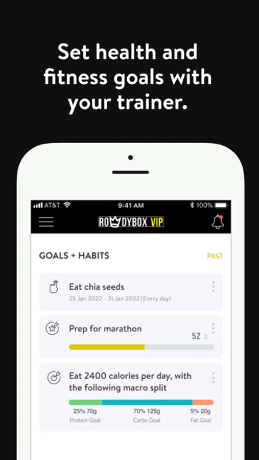 With the RowdyBox VIP App, you will have access to additional nutrition, coaching, and workout programs designed specifically to help you reach your fitness and health goals! You can follow & track your progress, your nutrition, your lifestyle habits, workouts and results–all with the help of your coach.