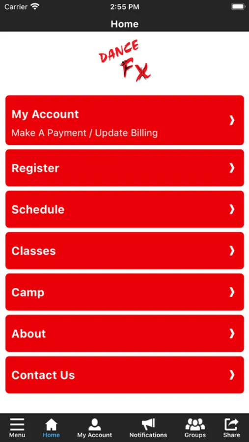 The Dance FX app allows you to manage your account with ease, register for classes and events. You'll also receive important notifications about class changes, closings, registration openings, special announcements, upcoming events, recital and so much more.