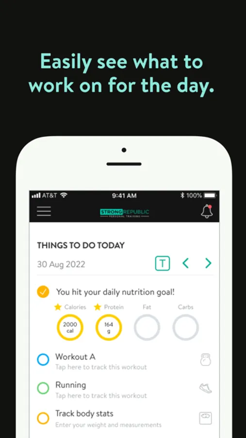 With the Strong Republic Personal Training App, you will have access to workout programs designed specifically to help you reach your fitness and health goals! You can follow & track your workouts, your nutrition, your lifestyle habits, measurements and results–all with the help of your coach.
