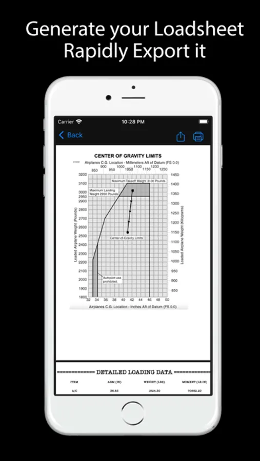 - EXPORT LOADSHEET AND CG CHART TO PRINT