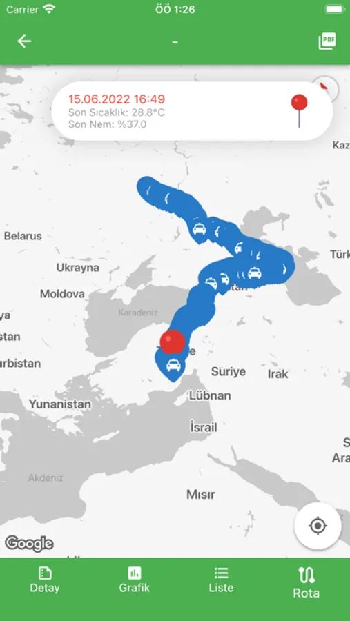 Farmex Mobile sistemi, sıcaklık, nem ve konum ayrıntıları dahil olmak üzere önemli gönderilerin mevcut konumuna, rotasına, grafiklerine, uyarılarına ve tablolarına erişmenizi sağlar.