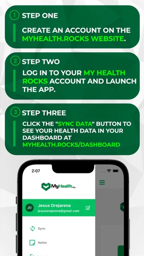 My health rocks app is a tool designed to sync your Apple Health Kit data with the myhealth.rocks website where you'll able to view your health information in a personalized dashboard. Within my health rocks app, you can also take periodic notes about your health status and create tasks that will sync automatically with the website.