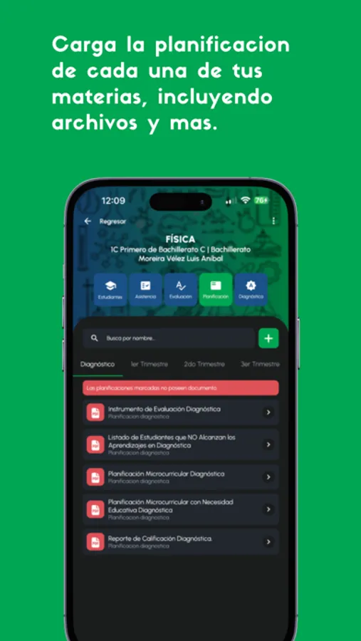 Con este aplicativo los profesores podrán configurar una agenda educativa independiente del directorio personal, en el cual se identifica el Nivel, Curso, Tutor, Analista DECE y Representante designado a cada estudiante. Además incluye la gestión docente en la asignación de calificaciones y asistencia del grupo de estudiantes de acuerdo a la asignatura creada.