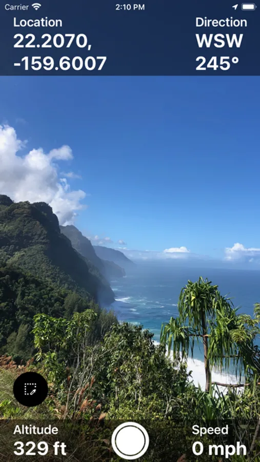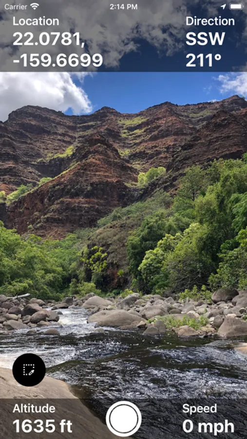 Create your own StatSnap to save or share with your friends. StatSnap uses your phone's camera and location data to generate a picture overlaid with your current position, direction, altitude, and speed. The app also allows you to change the statistical data's text and background color prior to snapping your picture, allowing you to get that perfect shot. StatSnap isn't only a camera app. It's the perfect utility app for the outdoors. For example, what direction is the sun truly rising or setting in and what's my altitude at this magnificent lookout? Just open StatSnap and point it at the sun to find out. How fast are we going in my friend's boat. Open StatSnap and easily view the boat's speed and the direction you're heading. The scenarios are endless.