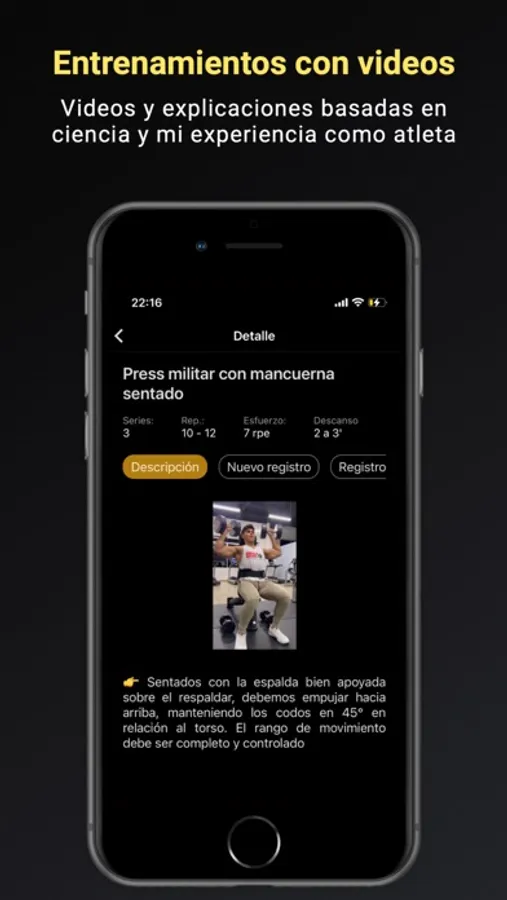 -Videos explicativos de como realizar tus ejercicios detalladamente.