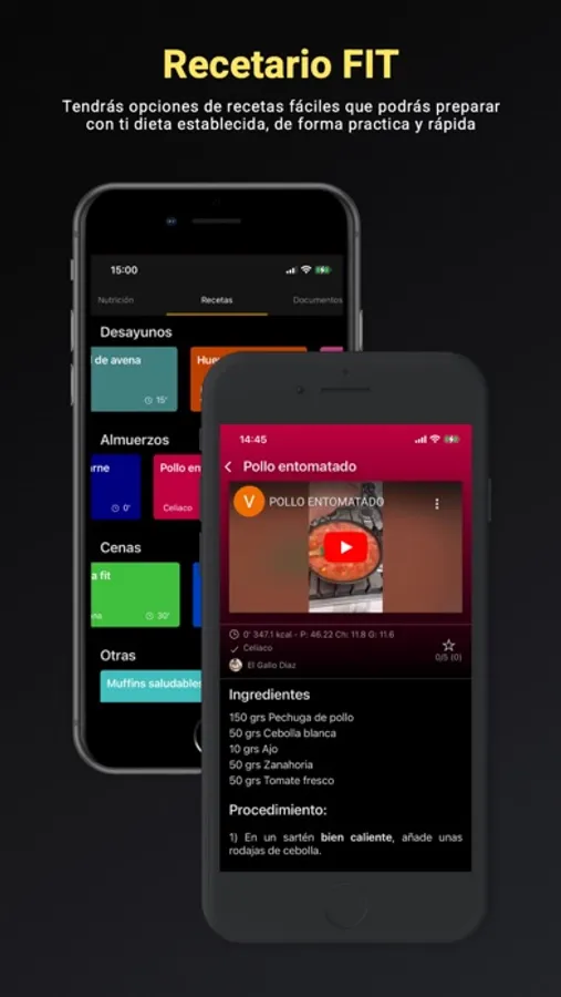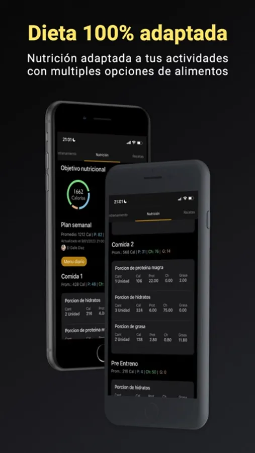 -Macrocoaching donde te indicamos la cantidad de calorías y macronutrientes que consumes por día y por comida.