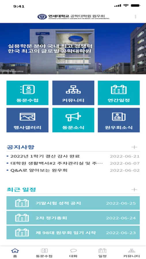 연세대학교 공학대학원 원우수첩의 소식, 정보 및 채팅 등을 확인할수 있습니다.