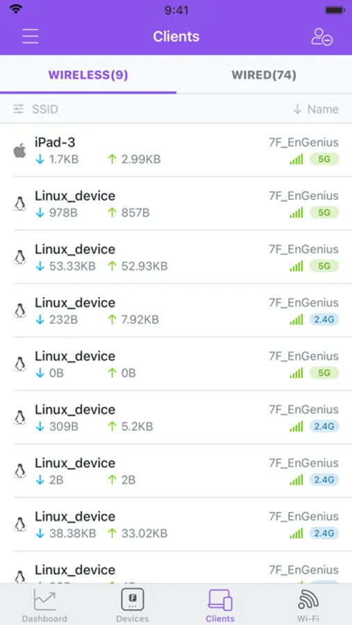 - Block suspicious clients, set speed limits, and check connectivity information.