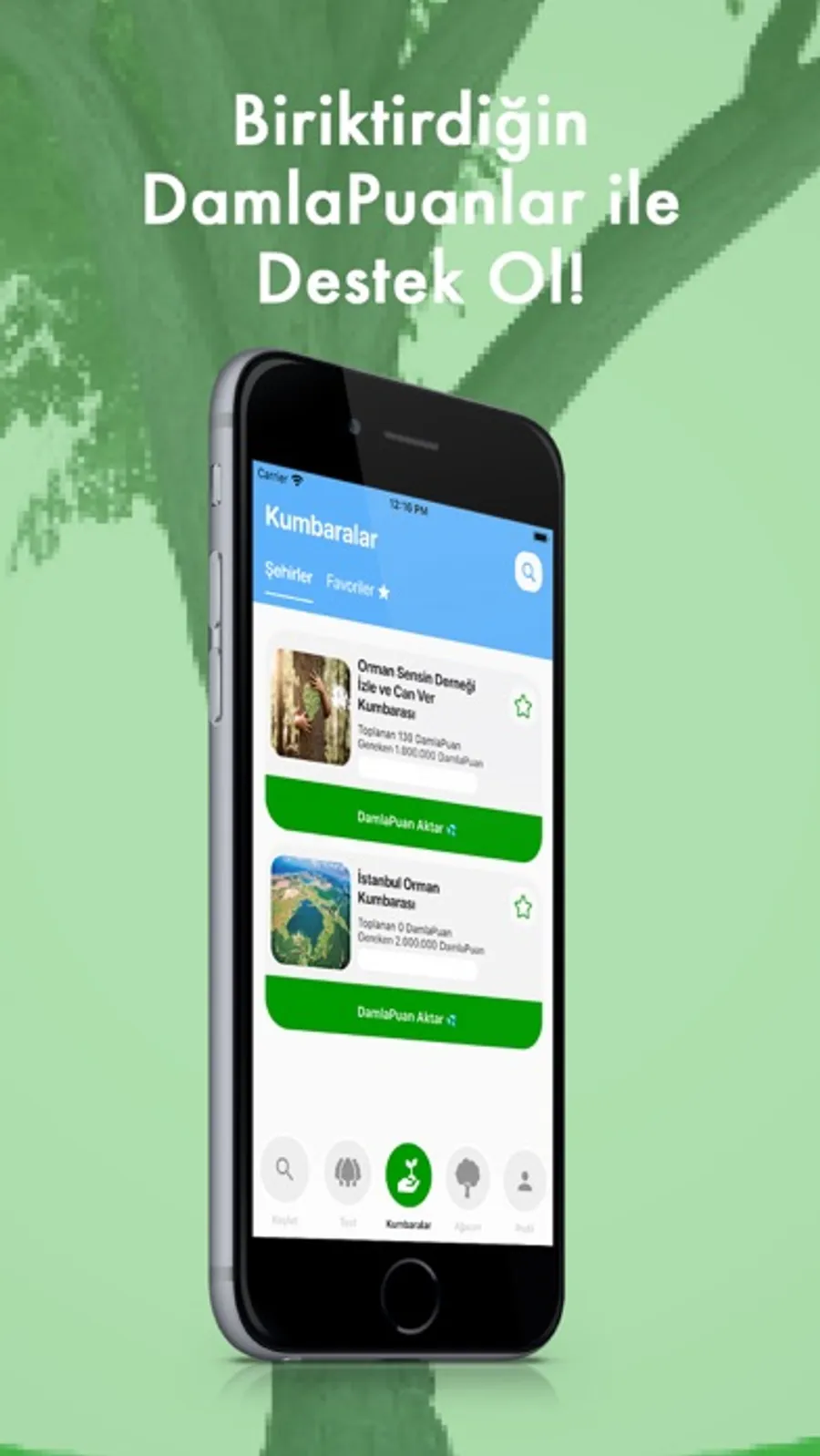 Ülkemizin orman ihtiyacını Orman Bakanlığı’mızla ortak hareket ederek tespit edip, o bölgelere yoğunlaşıp çalışmalarımız devam etmektedir. Bu fidanların dikimi için sizlere çok fazla ihtiyacımız olacak. Tamamen ücretsiz olan uygulamamızı indirerek ve çok fazla kişiye indirterek gün içerisinde uygulamamızı birkaç dakika takip edip bu sayede DamlaPuan’larınızı seçtiğiniz kumbaralara aktararak katkıda bulunabileceksiniz.