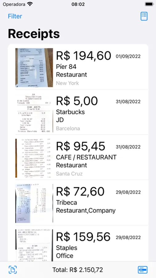 Organize them by tags and date, helped by the document scanning features (OCR) that try to fill in the name of the receipt, it's cost, and purchase date! You can also use your location to make it possible to search by city.