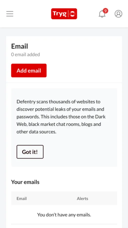 Tryg ID Protect is provided as a service with some of Tryg Forsikring’s insurances and products. If you’ve gotten a welcome email from Tryg ID Protect, this means that you can use this app.