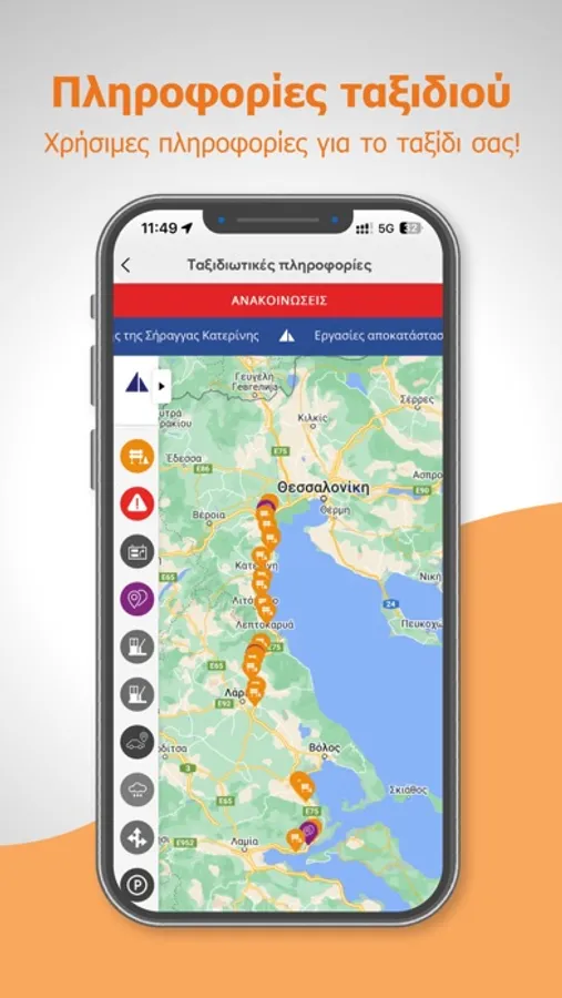- sends notifications based on the user's location - if activated - regarding construction/maintenance works or incidents affecting traffic, as well as occasional offers