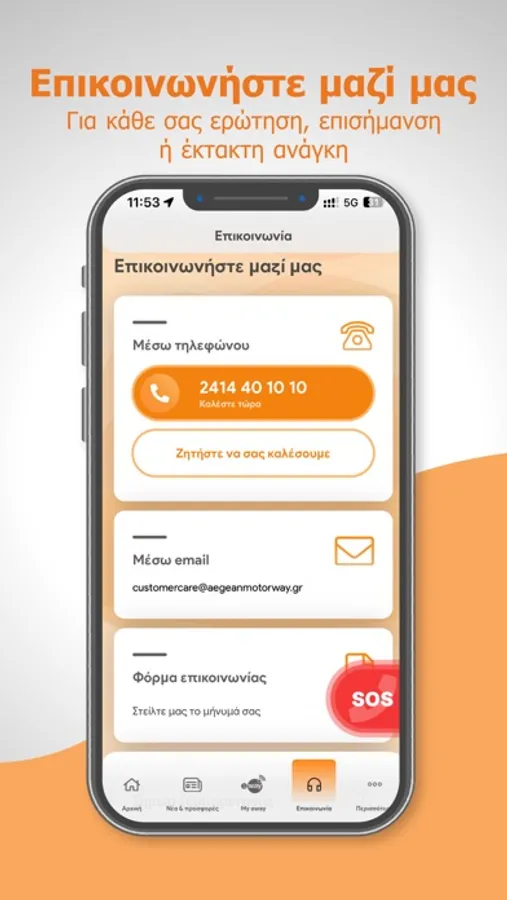 - allows users to contact the Aegean Motorway customer service team (by phone, email, by filling in contact form, or in person with directions to the CSPs)