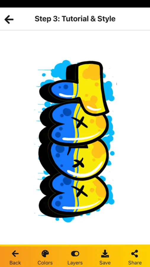 After you created your graffiti, you can hide/show the layers (fill-ins, background, etc.) of the graffiti to get an idea of how the letters are build.