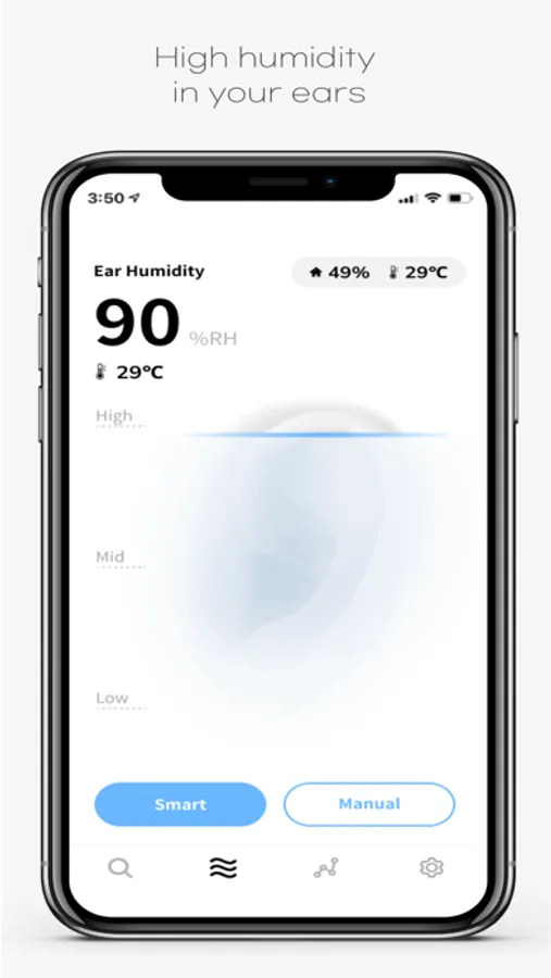 Smart mode uses data from both the ambient environment AND your ears for smarter humidity control.