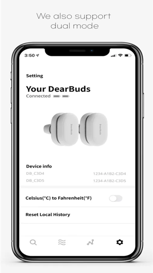 Dual Mode will let you connect 2 different DearBuds SE for humidity and temperature relief and measurement in both ears at the same time.