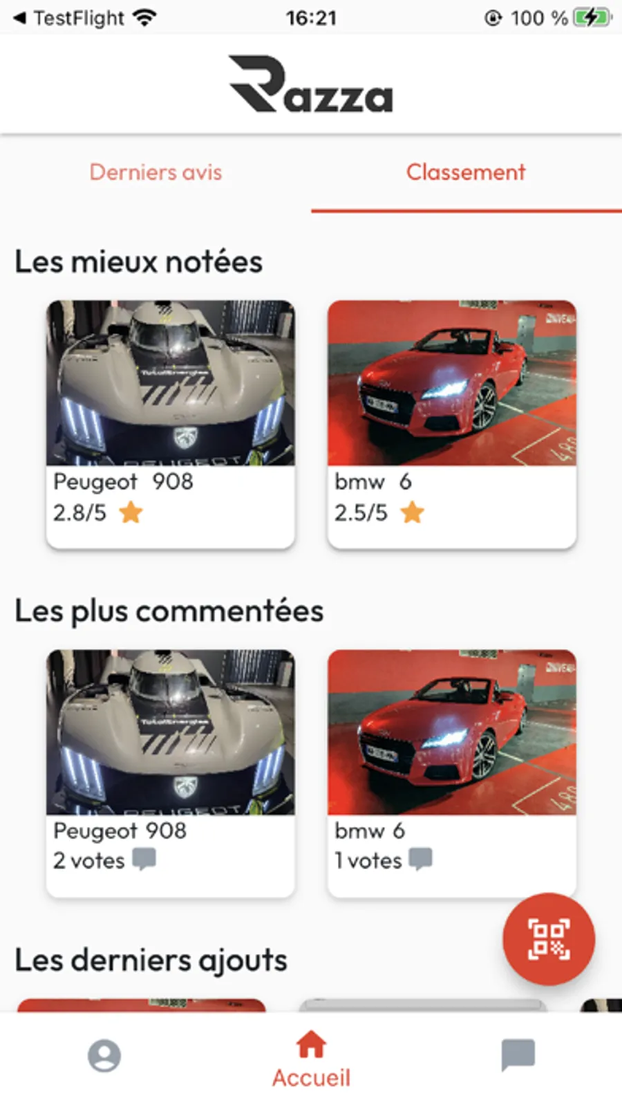 Razza permet aux passionnés d'échanger entre eux, et de donner leurs avis via des notes et des commentaires sur les véhicules inscrits.