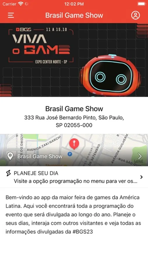 Bem-vindo ao app da maior feira de games da América Latina. Aqui você encontrará toda a programação do evento que será divulgada ao longo do ano. Planeje o seus dias, interaja com outros visitantes e veja todas as informações da #BGS23