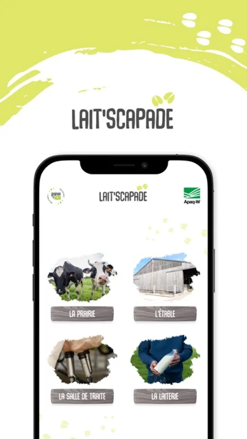 Cette application mobile, à vocation pédagogique est conçue pour les enfants de 8 à 12 ans, permet de découvrir de façon ludique la production du lait. Une expérience numérique à la découverte d’un produit alimentaire simple mais à la base de bien des aliments. Tous ayant leur place dans une alimentation équilibrée. Grace à des vidéos 360°, les enfants seront emmenés au cœur d’une ferme laitière et verront l’envers du décor d’une laiterie. Des quiz et autres informations complémentaires permettront aux enseignants, parents ou animateurs d’appréhender le « chemin du lait » en fonction de l’agriculture wallonne. Le lait est connu de la plupart des jeunes consommateurs. Cependant à la question « D’où vient le lait ? » les réponses « de la boite » ou « de la vache » sont bien trop simples. Partir en escapade virtuelle à la découverte du lait, c’est rencontrer les animaux, les éleveurs, et les maillons d’une des filières les plus remarquables de l’agriculture en Wallonie. Ce projet est développé par l’Apaq-W dans le cadre de son service pédagogique « Graines d’AGRI ».