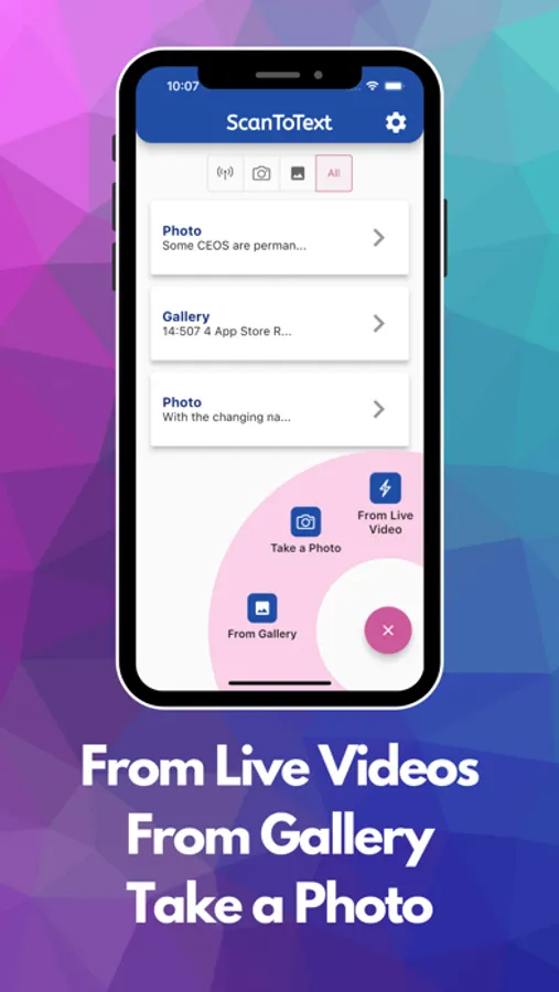 - "From Gallery": you can export your existing images into ScanToText and the app will extract the texts from them