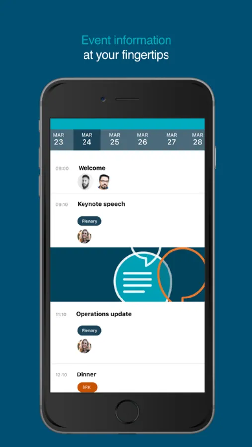 Participants can message, exchange contacts, arrange to meet up, receive a personalised agenda, participate in live surveys and Q&A.