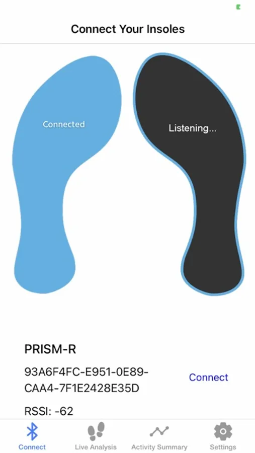 * Insole Sensor Data is connected through Bluetooth LE when the app is in use.