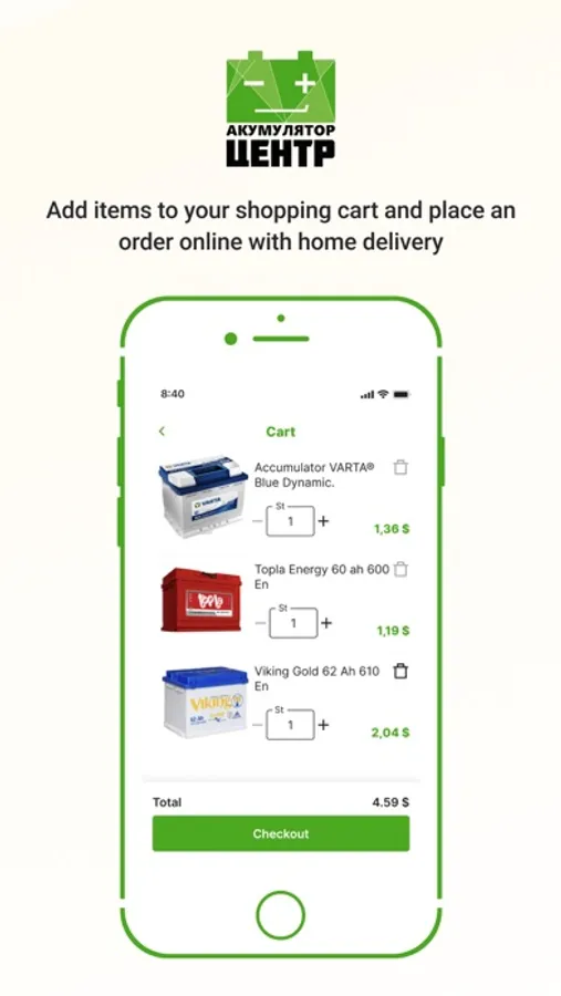"BATTERY Center" - all types of batteries in one convenient application - for cars, electric vehicles and devices.