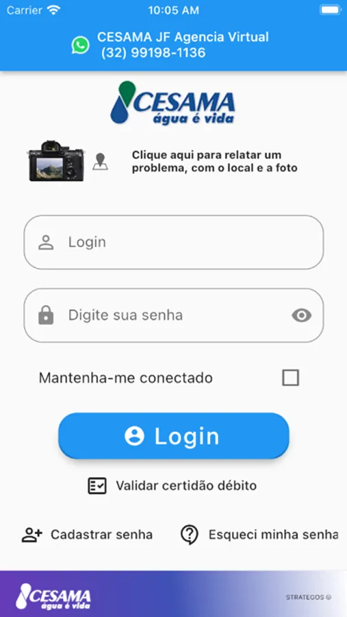 - Alerte a CESAMA sobre eventuais ocorrências, serviços ou reparos na rede de água ou esgoto, podendo fotografar e informar localização;
