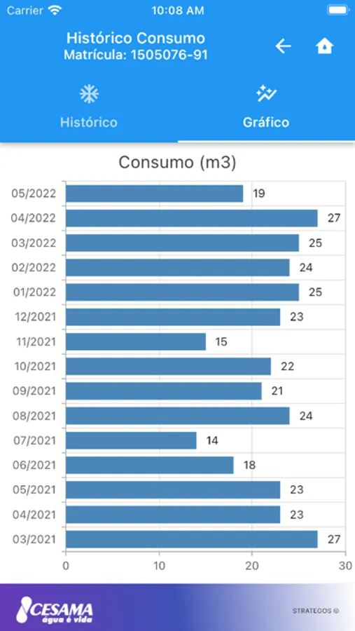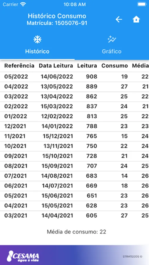 - Consulte seu histórico de consumo;