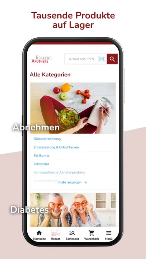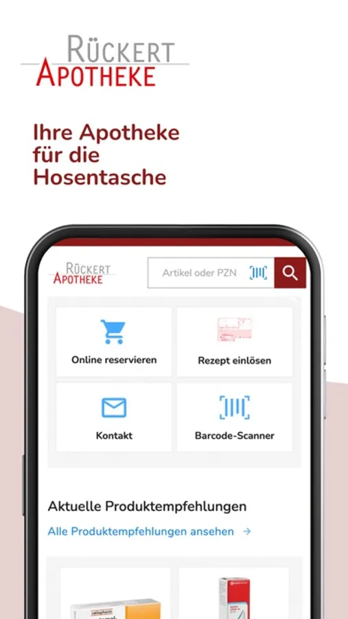 Die Rückert-Apotheke Stadtlauringen für die Hosentasche: (E-)Rezepte und Medikamente einfach online bestellen.