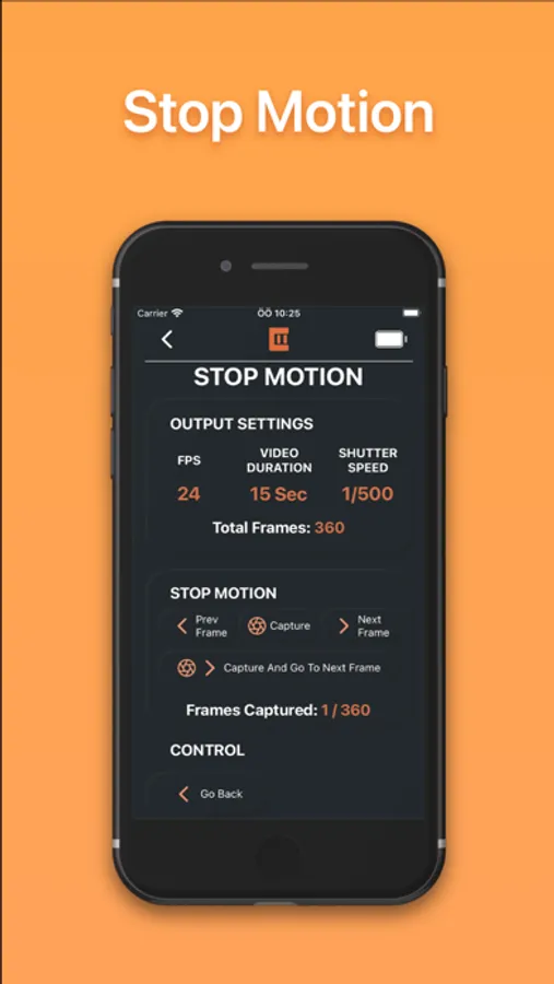 Each motion can be turned to a Time-lapse or Stopmotion shot with click of a button.