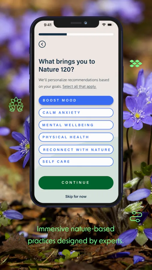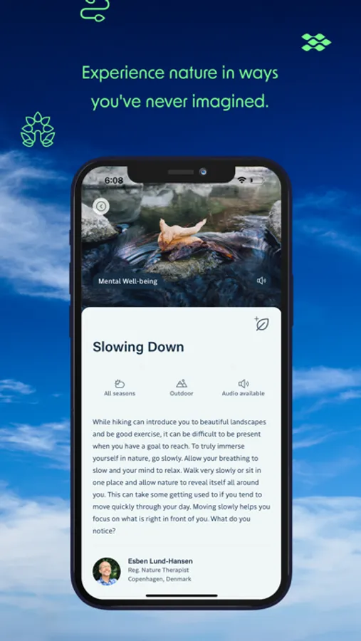 Welcome to Nature 120, the world’s first self-guided nature therapy app! Start experiencing nature in ways you've never imagined before.